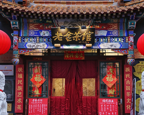 Questa casa da tè prende il nome dal celebre artista popolare Lao She e dalla sua omonima opera teatrale. Fondata nel 1988, oggi dispone di una superficie di oltre 2.600 metri quadrati. È una grande casa da tè multifunzionale che integra lettura, ristorazione e cerimonie del tè.