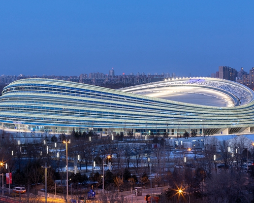 È lo stadio simbolo dei Giochi Olimpici Invernali di Beijing 2022, con un tetto a forma di sella e una facciata esterna circondata da 22 "nastri di ghiaccio".