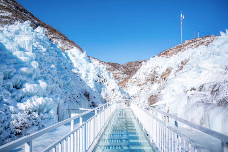 L'acqua solidificata colonne di ghiaccio simili alla giada e cortine di ghiacciate, che si riflettono armoniosamente con la Grande Muraglia che si tuffa nell'acqua. Lungo la riva, le cascate di ghiaccio pendono come nastri d'argento; passeggiando tra montagne, acque e l'antica Grande Muraglia, ci si può vivere un'esperienza immersiva e assaporare tutto il romanticismo dell'inverno